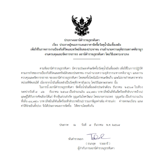 ประกาศการจัดซื้อจัดจ้างประจำเดือน ธันวาคม พ.ศ. 2567