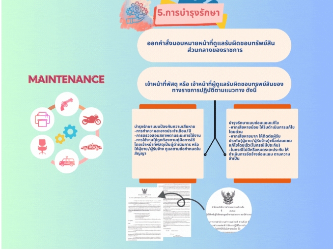 • จำแนกประเภททรัพย์สินของราชการ• แนวทางการเผยแพร่หรือเสริมสร้างความรู ้ ความเข้าใจให้เจ้าหน้าที ่สามารถใช้ของบริจาคได้อย่างถูกต้อง• กำหนดแนวทางควบคุม กำกับ ดูแลรักษา ตรวจนับ ตรวจสอบสภาพการใช้งานทรัพย์สินของราชการ โดยเฉพาะทรัพย์ประเภทที ่มีความเสี ่ยงต่อการนำไปใช้โดยมิชอบ• กำหนดแนวทางการยืมหรือเบิกจ่ายทรัพย์สินของราชการ ไปใช้ปฏิบัติงานที่ชัดเจนใช้ทรัพย์สินของราชการได้อย่างถูกต้อง