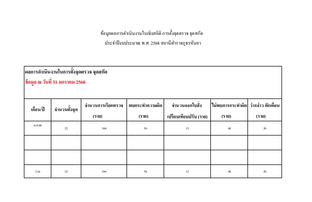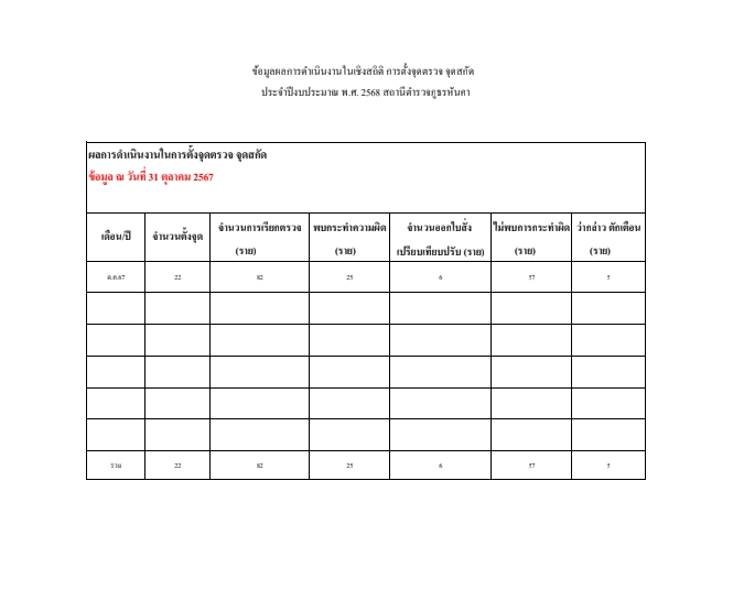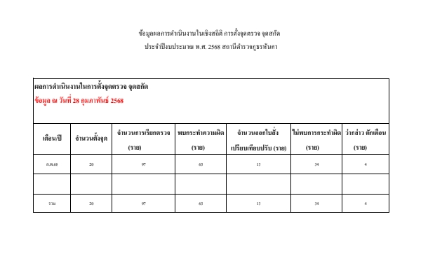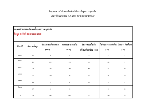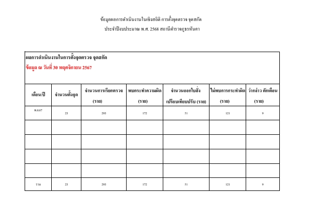 สถิติในการตั้งจุดตรวจ จุดสกัด 6 เดือน (ต.ค.2567- มี.ค.2568)