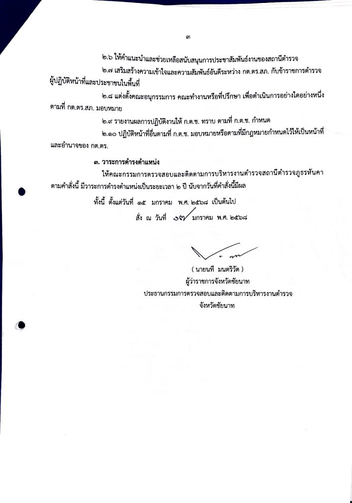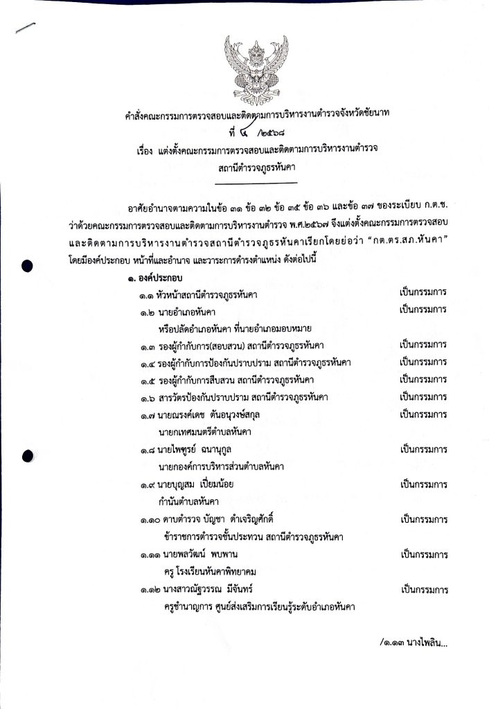 คำสั่ง แต่งตั้งคณะกรรมการตรวจสอบและติดตามการบริหารงานตำรวจสถานีตำรวจภูธรหันคา