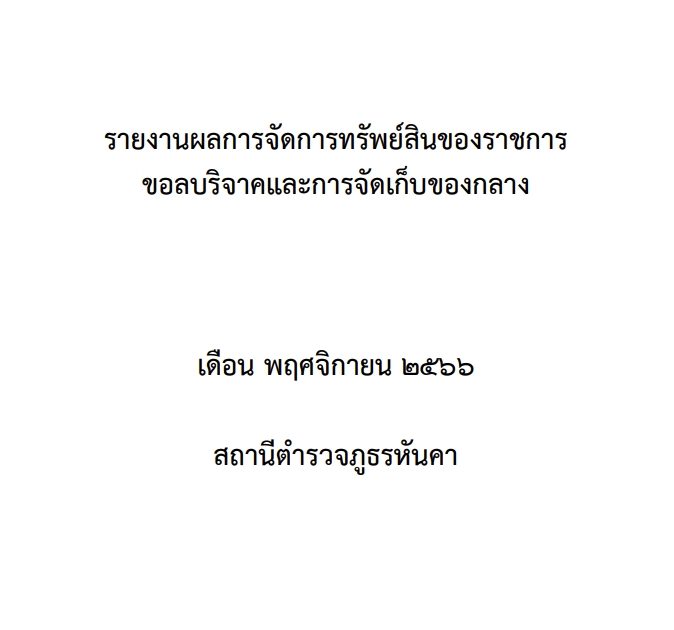 รายงานผลการปฏิบัติเกี่ยวกับการจัดการทรัพย์สินของทางราชการ ของบริจาค การจัดเก็บของกลาง พ.ย.66