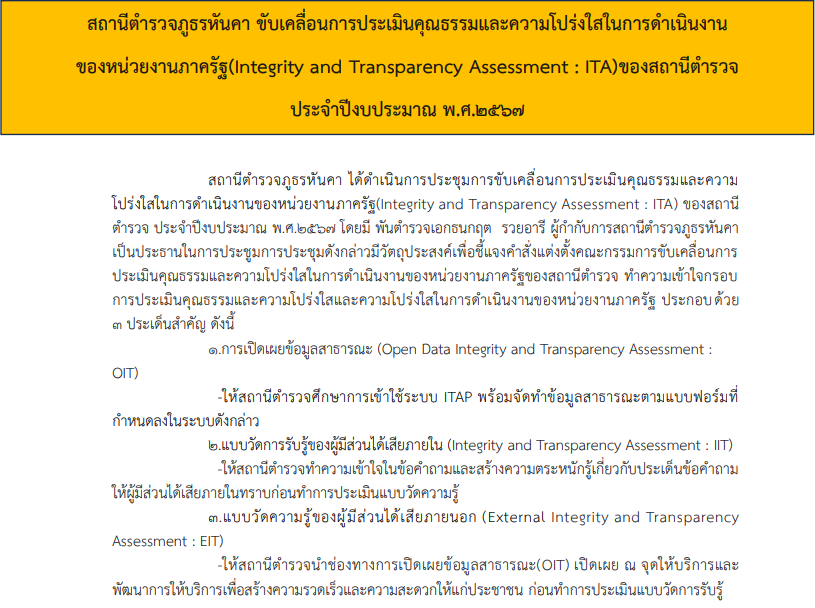 การประชาสัมพันธ์ข้อมูลผลการดำเนินงานของหน่วยเรื่องการประเมิน ITA ปีงบประมาณ 67